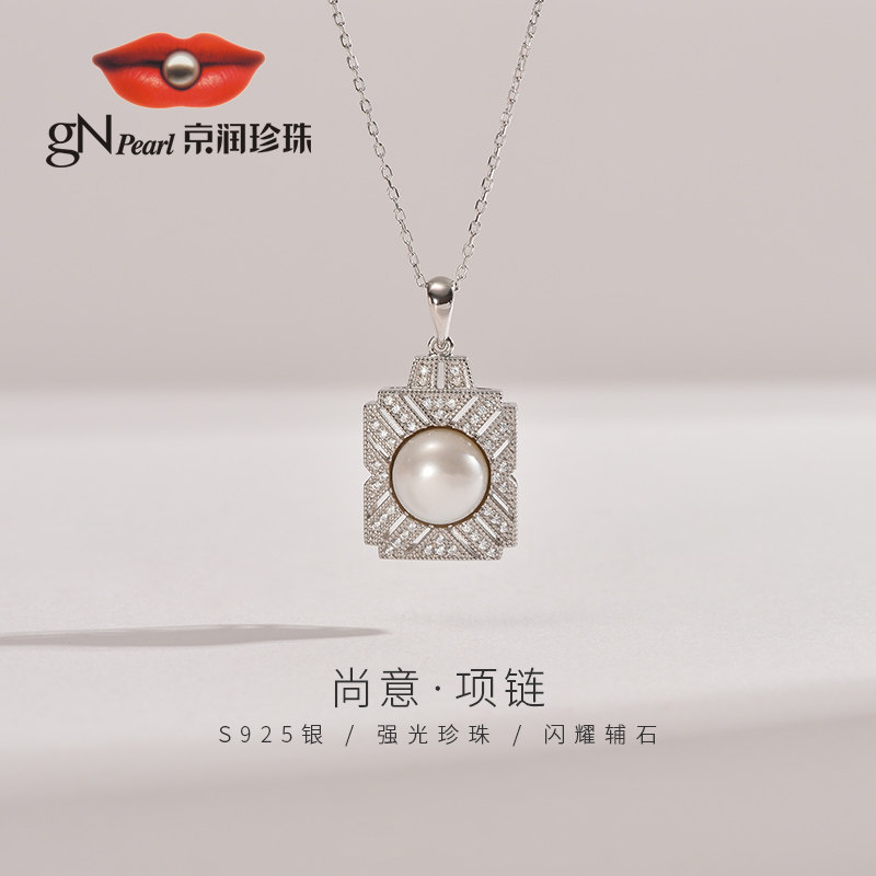 【京润珍珠·尚意银】9-10mm淡水珍珠吊链,方形设计超显气质!百搭时尚,温柔又高级,女生必备珠宝【赠运费险】