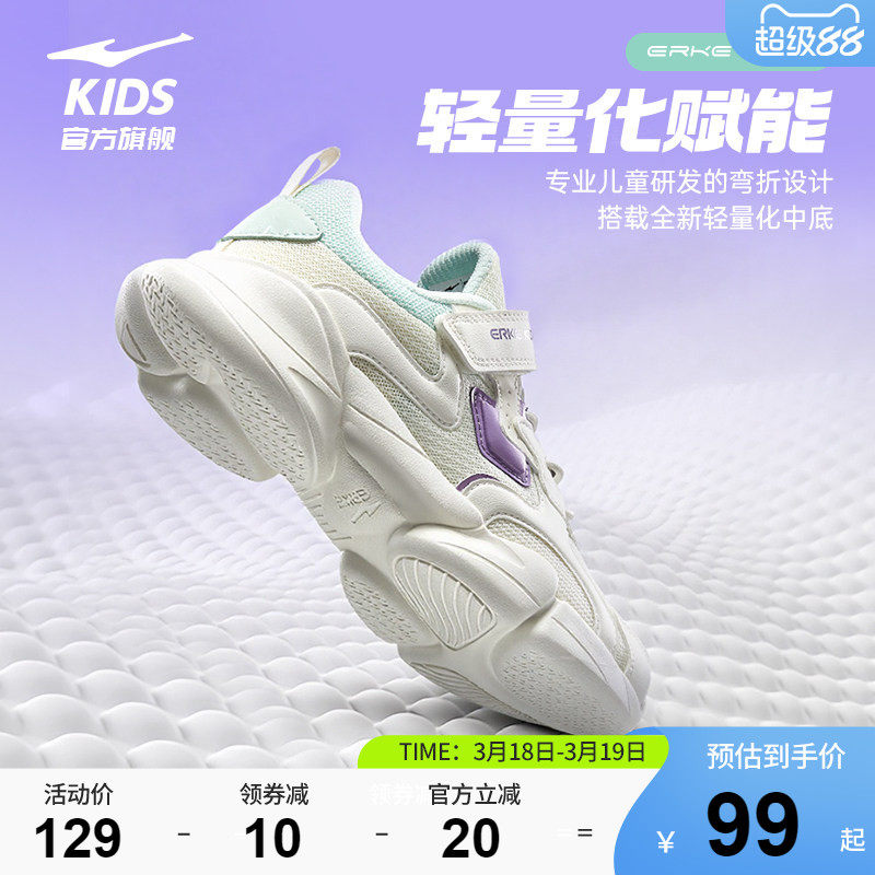 叠加淘礼金到和淘金币8元手59。小贝|鸿星尔克童鞋女童运动鞋春季新款儿童透气跑步鞋轻便鞋子