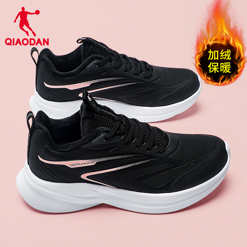 乔丹加绒运动鞋女鞋2025冬季新款二棉鞋专业跑鞋皮面防水跑步鞋子