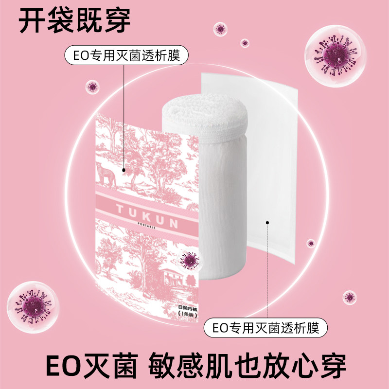 纯棉面料!!经期、出差旅游都能用。EO灭菌级安全又放心~柔软亲肤,穿上超级软糯!每条独立包装,方便又卫生,平时旅游携带也不占空间~