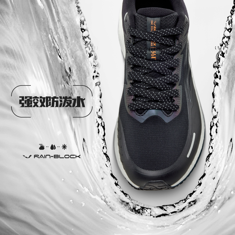 361雨屏8.0跑步鞋男鞋冬季防泼水加绒运动鞋雨天通勤黑色减震跑鞋