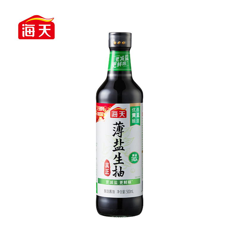 海天薄盐生抽减盐30%!薄盐生抽轻轻一淋,为佳肴锁住醇鲜~