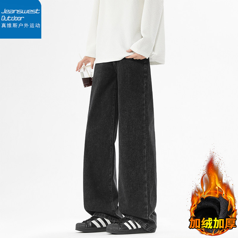 真维斯户外运动牛仔裤男潮牌加绒美式复古休闲冬季百搭长裤直筒裤