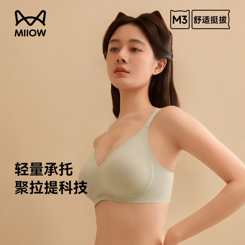 【戚薇同款】猫人气垫杯无痕收副乳美背大胸显小聚拢文胸罩内衣女!