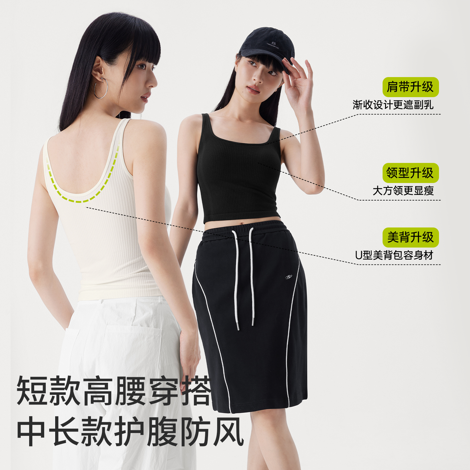 【超级立减15%】方领宽肩带背心3.0天然更亲柔,精致更显瘦。露脐短款拉高腰线及胯长款遮肚显腰身。真省心,机洗不跑杯固定杯垫,高密度防变形。