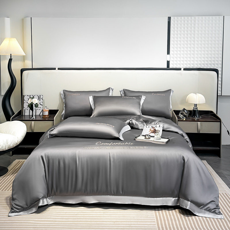 2025新款水洗真丝宽边刺绣四件套床上用品床单被套被罩床盖高品质