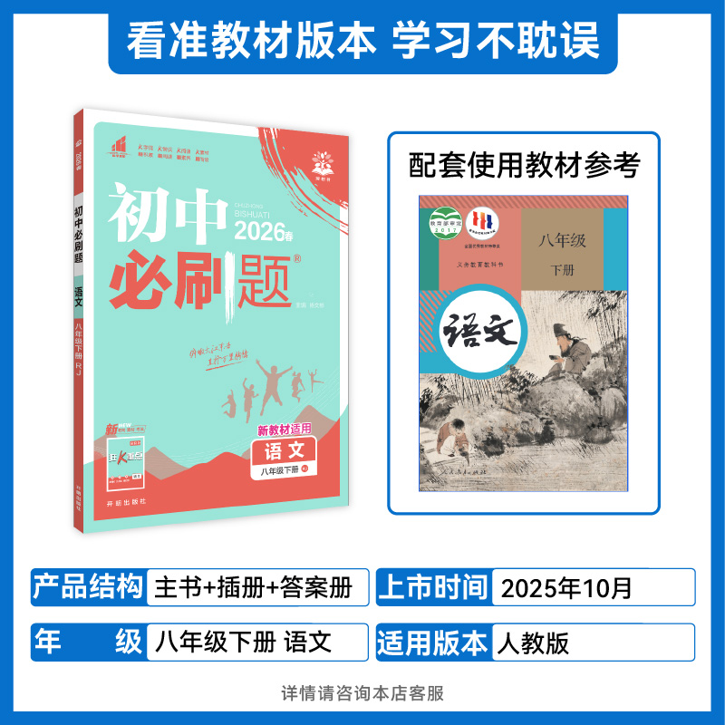 【附狂K重点+答案解析】2026春初中必刷题,5000+分钟专项配套名师视频,AI错题本,智能刷题,专项强化,攻克重难,能力提升,强化素养,八刷体系,一站刷"透“,学霸无捷径,唯有必刷题!