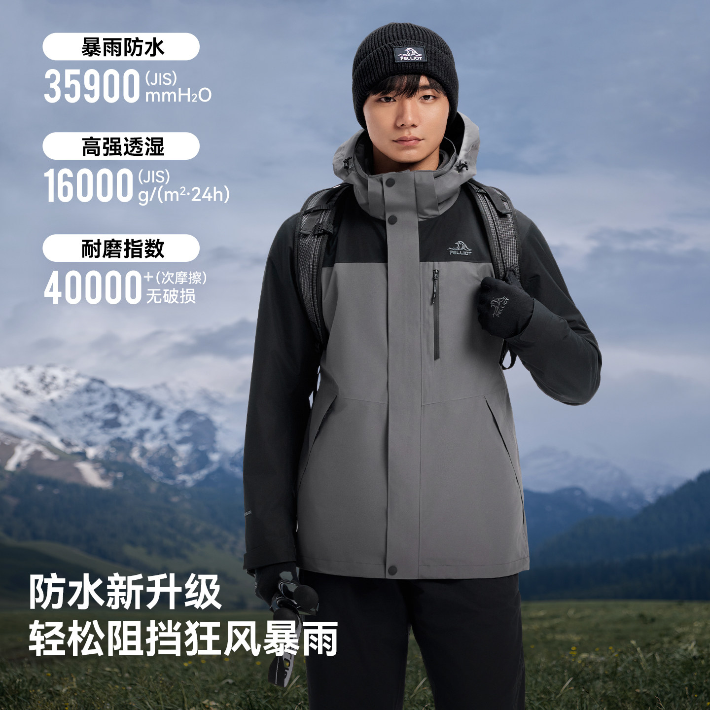【经典2.0】伯希和户外黑色冲锋衣男冬季三合一防水外套羽绒服女