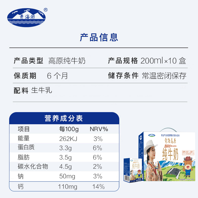 青海湖3500米高原牧场纯牛奶,全生态放养,奶源纯净,自然产奶!蛋白质含量高达6.6!奶香纯正,甘甜醇香,让你的唇齿充盈奶香,奶味清香,甘甜浓郁无腥,纯粹的自然美味。【产地直邮】