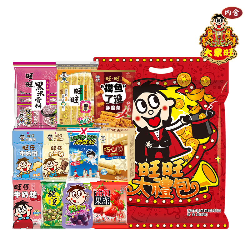 【拍4件叠加淘金币春节送礼!旺旺零食大礼包680g,含雪饼、仙贝等多种美味,儿童礼物伴手礼佳选,口感丰富,性价比高,适合家庭分享!】