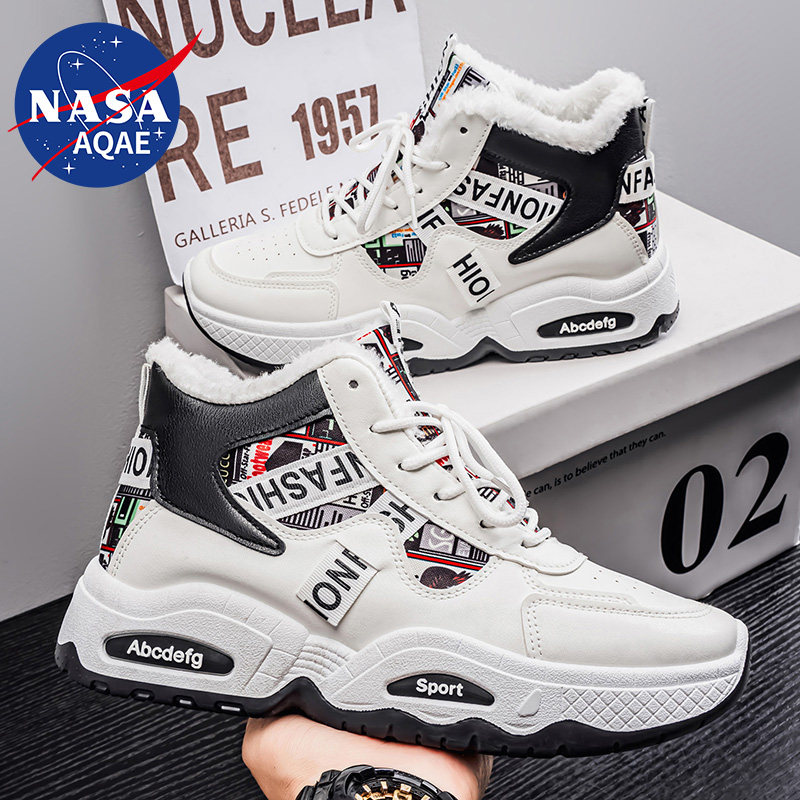 NASA AQAE联名高帮男冬加绒运动休闲防滑减震耐磨增高篮球保暖鞋