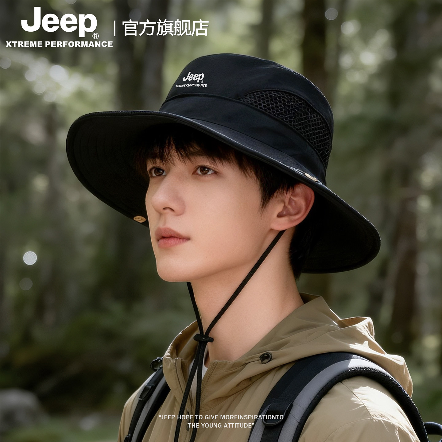 jeep吉普男士夏季钓鱼遮阳渔夫帽户外登山徒步透气防晒太阳帽子男