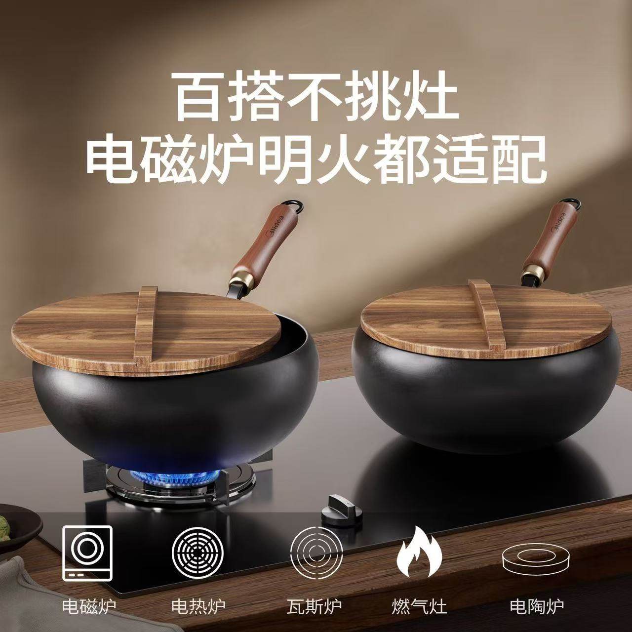 三叔三婶铁锅不粘炒锅家用炒菜防锈无涂层锅不粘铁锅加深平底锅