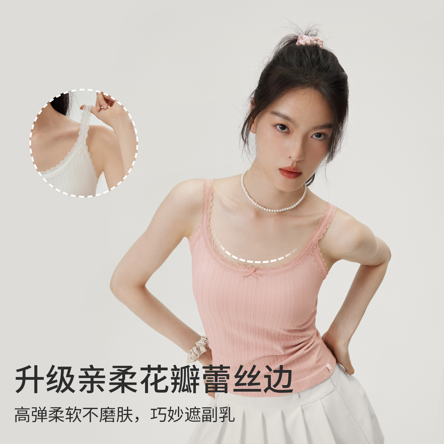 【超级立减17元】花瓣蕾丝吊带可甜可辣,自然少女感!花瓣蕾丝边,甜美带点小性感,温柔麦穗肌理,别具一格!真隐形不透杯不凸点,可机洗不跑杯!服帖微笑领,遮副乳防走光,时尚百搭!