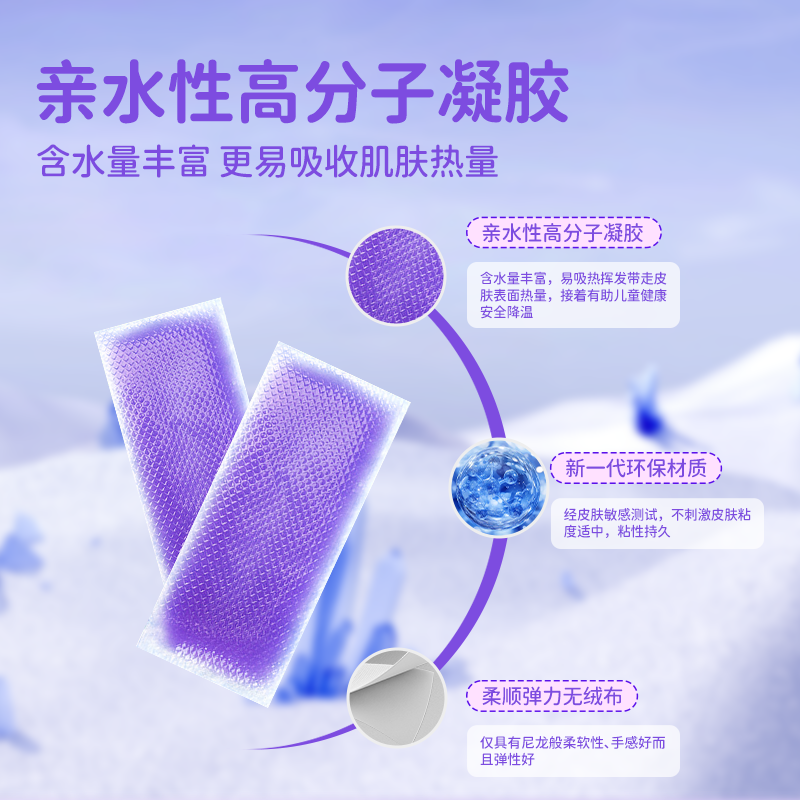 专为宝贝设计。采用物理降温原理,温和不刺激宝宝娇嫩肌肤,快速缓解发烧带来的不适感。无论是感冒还是其他原因引起的体温升高,这款冷敷贴都能迅速起效,让您的孩子舒适度过每一个夜晚。