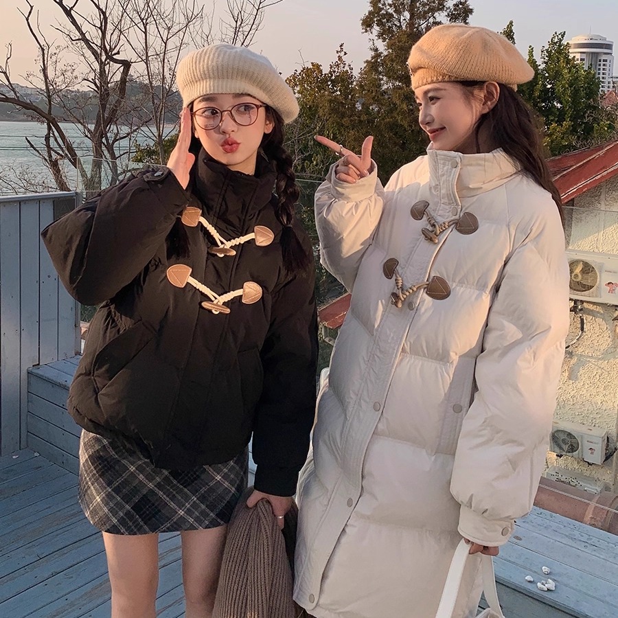 牛角扣羽绒服女立领小个子设计感2025年新冬保暖白鸭绒韩系面包服