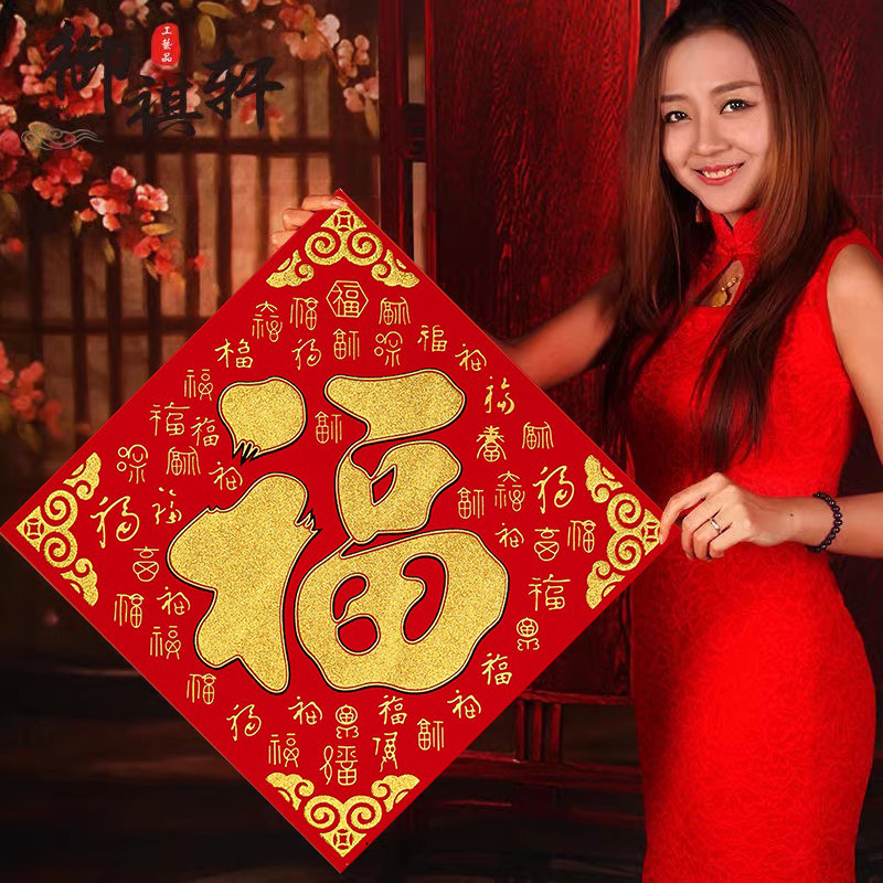 2026马年画新款植绒布大号春节过新年装饰立体自粘福字门贴纸贴墙