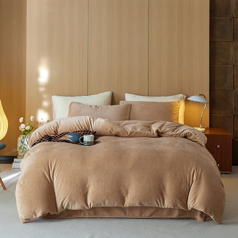 2025年秋冬新款高奢精品7D雕花绒四件套冬天保暖套件双人床品套件