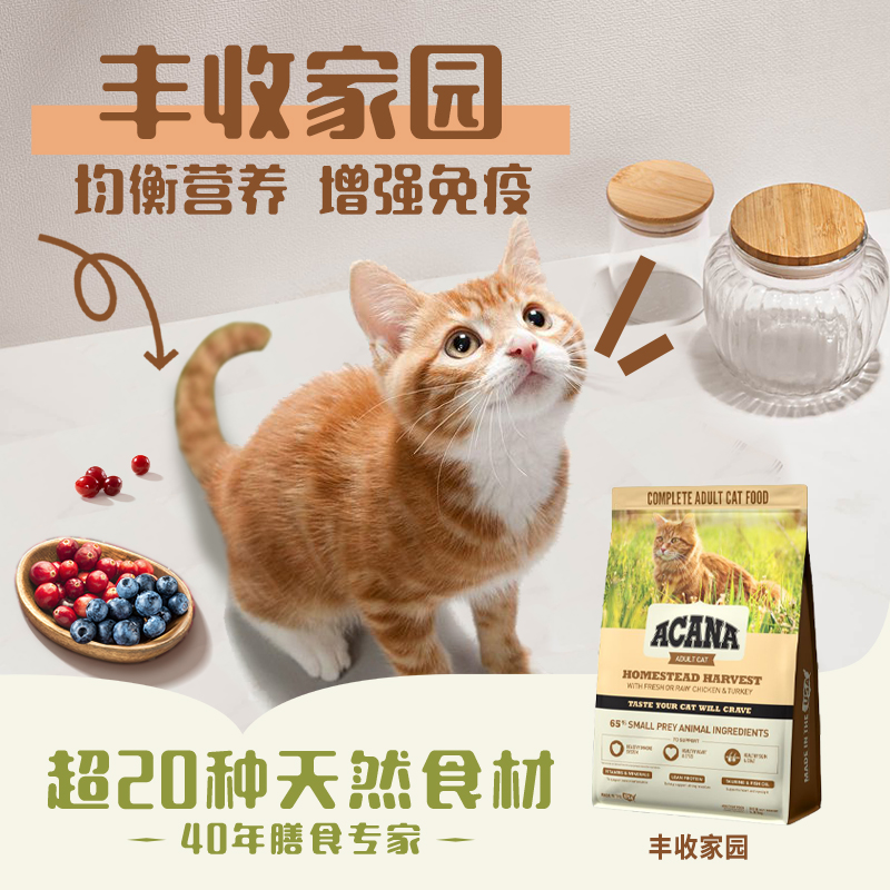 ACANA爱肯拿,猫粮,成猫幼猫鸡肉丰收家园猫粮1.8kg,进口全价通用