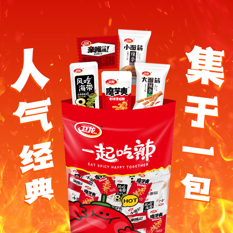 卫龙缤纷零食大礼包豆干素肉解馋辣条海带亲嘴烧魔芋爽大小面筋