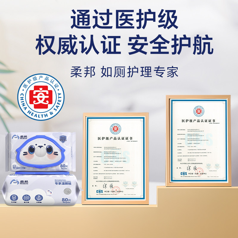 柔邦湿厕纸,专享厕用湿巾,80抽家庭实惠装男女士专用湿厕巾柔软厚实