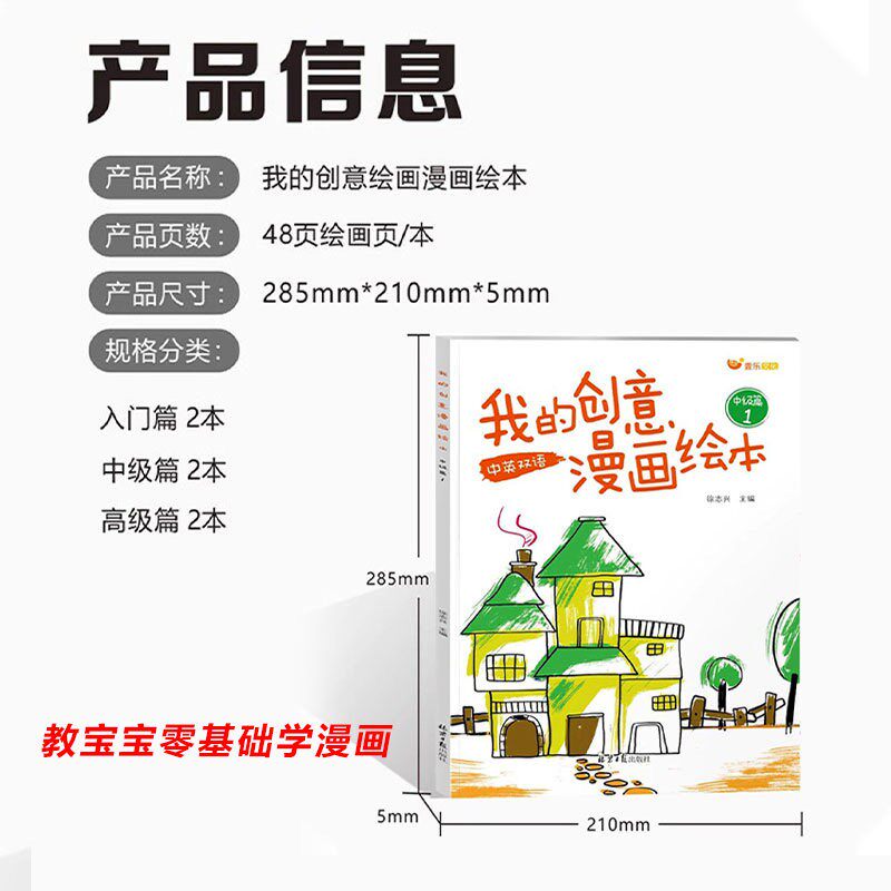 全套6册绘画启蒙我的创意漫画绘本培养宝宝绘画天赋中英双语儿童填色手绘画册动物造型太空世界食物水果幼儿园绘画涂色书