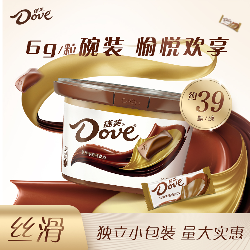 德芙牛奶浓黑巧克力多颗装234g*2碗儿童休闲小零食糖果纯正可可脂