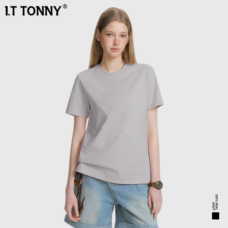 潮牌I.T TONNY官方旗舰店2026新款短袖情侣纯色T恤三本针打底衫XW
