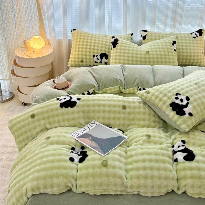 玉芙妮A类仿兔兔绒四件套牛奶绒无静电三件套加厚床单床笠套件