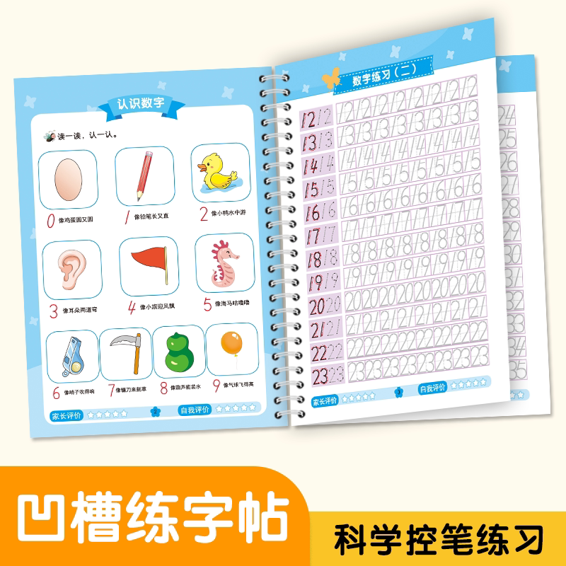 儿童凹槽练字帖 幼儿园小学生一年级二年级三年级笔画汉字数字英语练字帖描红本点阵控笔训练幼小衔接一日一练凹槽练字帖重复使用