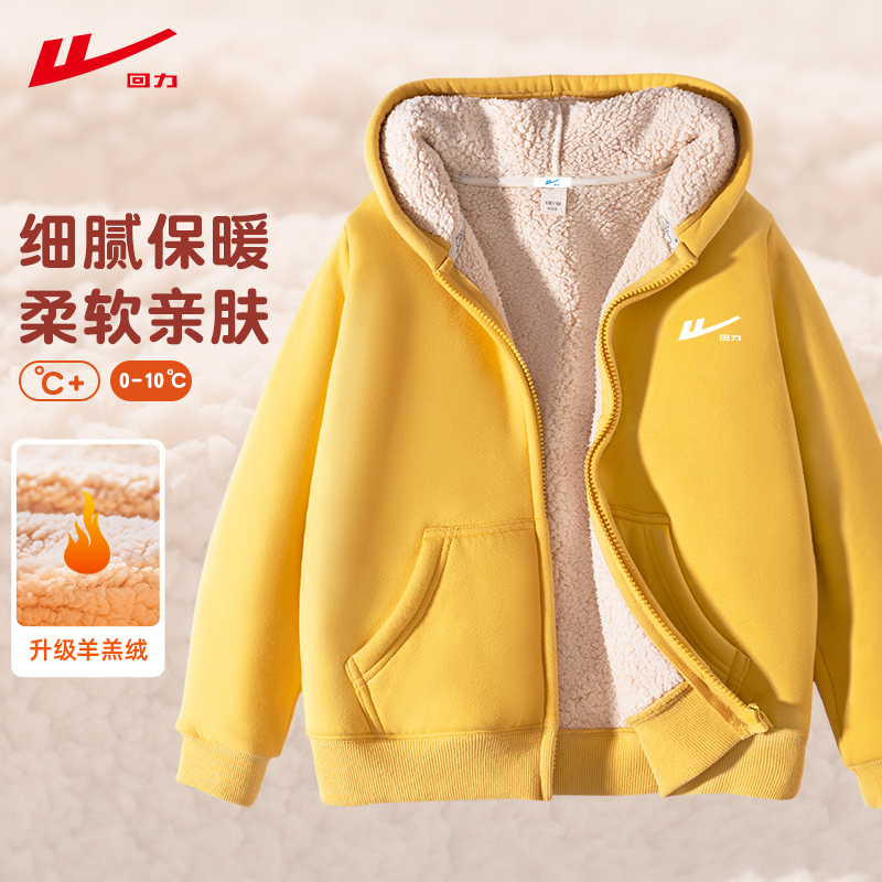 回力童装儿童加绒外套厚中大童加厚仿羊羔绒秋冬保暖男童女童冬装